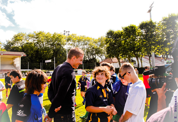 Après les riders, voici que j’ai cotoyé une semaine durant des rugbymen… ambiance toute aussi sympa et dépaysement ‘made in pays basque’ assuré ! Imanol joue au Biarritz Olympique et dans l’équipe de France ; il organise des stages durant l’été, 100 petits gars courent partout et jouent au rugby (entre autre car ils font du surf, de la pelote basque, du foot, de la piscine etc.)…