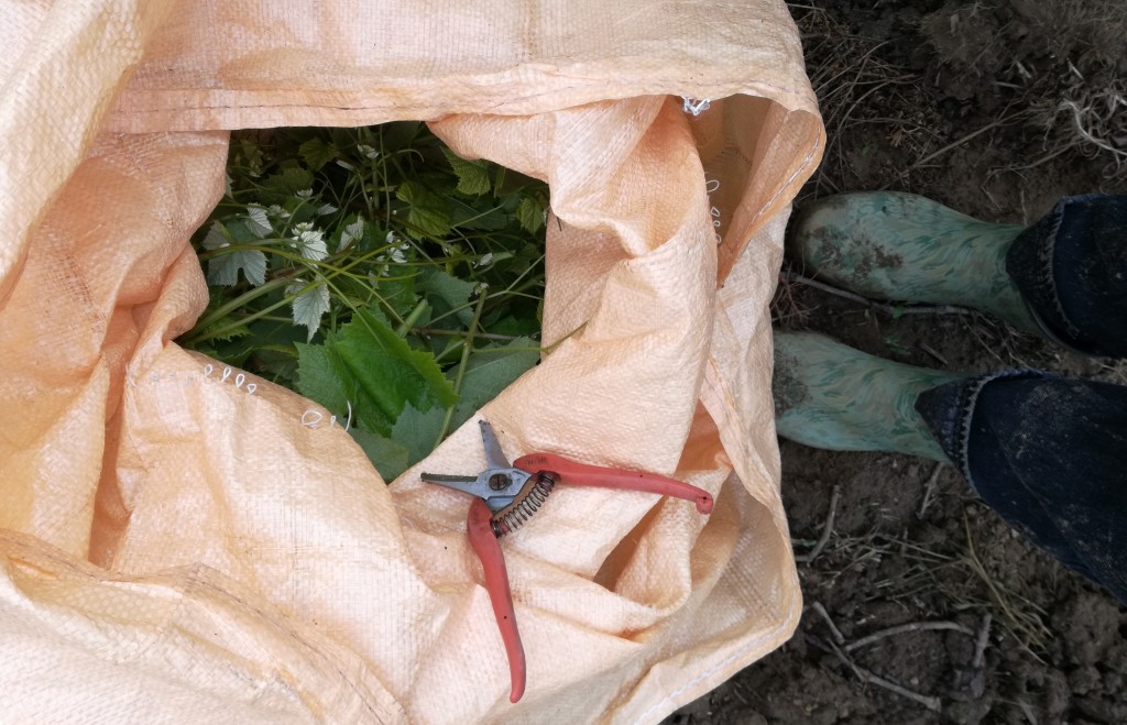 Un sécateur et un sac plus tard me voilà dans la vigne à faire minutieusement la coupe des apex.